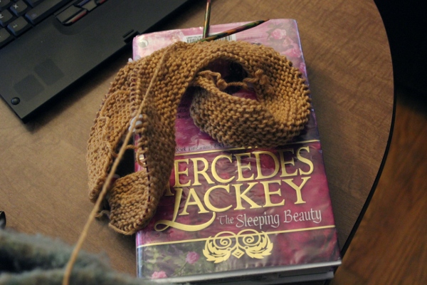 Still knitting my cardigan. I'm a little less worried about it fitting. Here's hoping my luck holds out! I'm reading Fortune's Fool which is the third book in The Five Hundred Kingdoms series by Mercedes Lackey. I need to find the fourth one from the library as I seem to be missing it.
